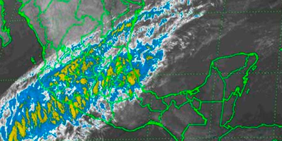 El Meteorológico pronóstico lluvias puntuales muy fuertes en Chiapas, Tabasco y Quintana Roo; puntuales fuertes en Veracruz, Oaxaca y Yucatán; así como aisladas en Chihuahua, Coahuila, Tamaulipas, San Luis Potosí, Guerrero, Hidalgo, Puebla y Campeche.