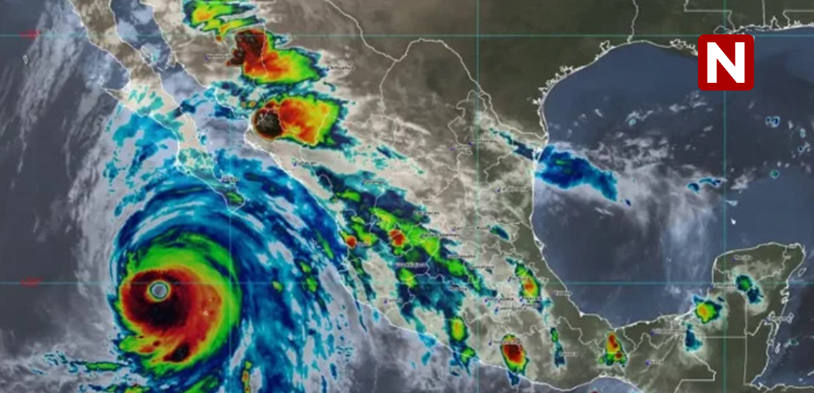 Hilary se debilitó a huracán categoría 2 con vientos máximos sostenidos de 175 km/h y rachas de 215 km/h y avanza sobre el Océano Pacífico hacia Baja California Sur.