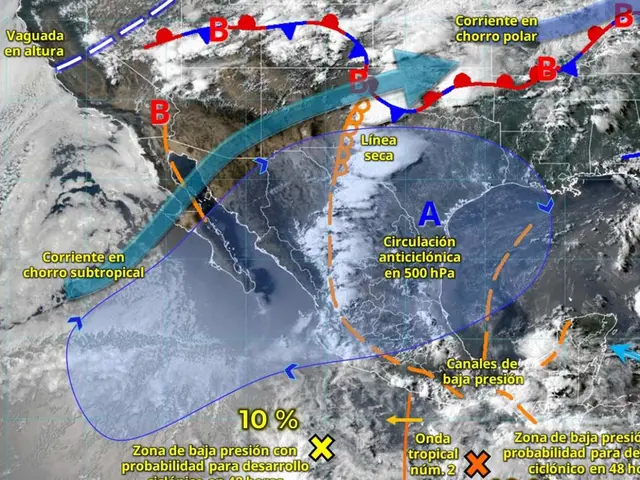 De acuerdo con el comunicado del organismo dependiente de la Comisión Nacional del Agua (Conagua), una zona de baja presión con probabilidad para desarrollo ciclónico y la onda tropical número 2 se ubicarán al sur de las costas de Oaxaca y Guerrero, en interacción con canales de baja presión sobre el sureste mexicano y la península de Yucatán, mantendrán la probabilidad de chubascos, lluvias fuertes a muy fuertes en el sureste y sur del territorio nacional; con puntuales intensas en Oaxaca y Chiapas. Asimismo, se pronostican vientos fuertes y oleaje elevado en las costas del Pacífico mexicano.