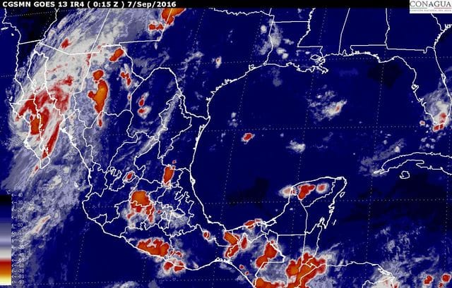 La Onda Tropical Número 26 que se extiende en el sur de Veracruz y Oaxaca, en combinación con el ingreso de humedad del Golfo de México y el Mar Caribe, ocasiona tormentas muy fuertes (de 50 a 75 mm) en áreas de Veracruz, Oaxaca y Chiapas; tormentas locales fuertes (de 25 a 50 mm) en regiones de Puebla, Tabasco, Zacatecas, Michoacán, Guerrero, Tamaulipas, San Luis Potosí e Hidalgo; lluvias con intervalos de chubascos (de 5.1 a 25 mm) en zonas de Campeche, Yucatán, Coahuila, Nuevo León, Aguascalientes, Colima, Guanajuato, Querétaro, Tlaxcala, Estado de México, Ciudad de México y Morelos, y lluvias escasas o lloviznas (de 0.1 a 5 mm) en Quintana Roo.
