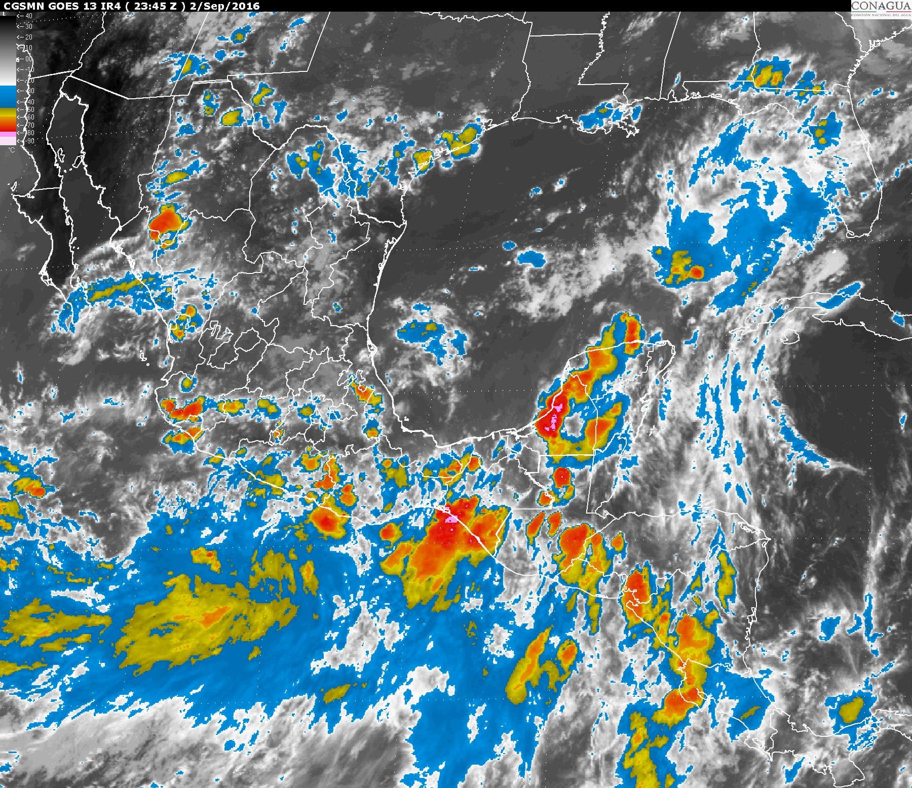 Para las próximas horas se prevén lluvias intensas en Nayarit, Guerrero, Oaxaca, Chiapas, Tabasco y el sur de Veracruz