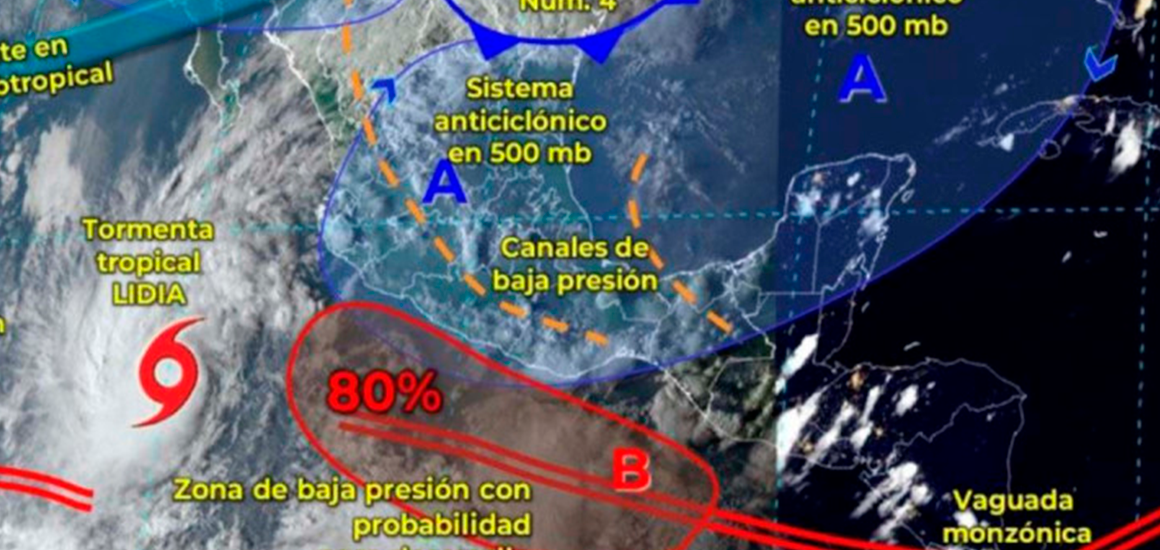 Asimismo, una zona de baja presión con probabilidad de desarrollo ciclónico al sur de las costas de Chiapas y Oaxaca, en combinación con un canal de baja presión, provocarán lluvias fuertes.