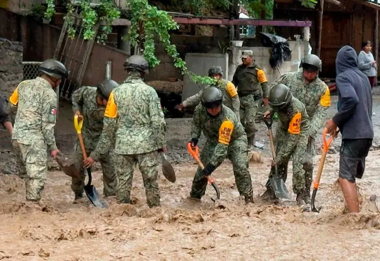 Las unidades de ingenieros del Ejército han retirado más de 11 mil metros cúbicos de escombros, desazolvado escuelas y caminos, y retirado más de 160 árboles caídos, hasta este lunes. La Guardia Nacional apoya estas labores mediante patrullajes preventivos y apoyo en la distribución de víveres y agua potable.