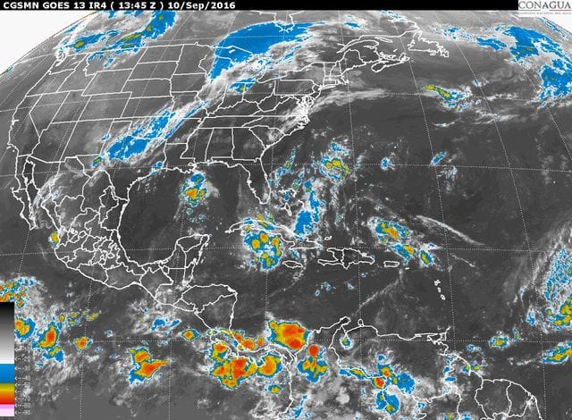 El SMN monitorea la trayectoria y desarrollo de cuatro zonas de baja presión con potencial ciclónico en las cuencas del Pacífico y del Atlántico, que por el momento no representan riesgo alguno para el país.