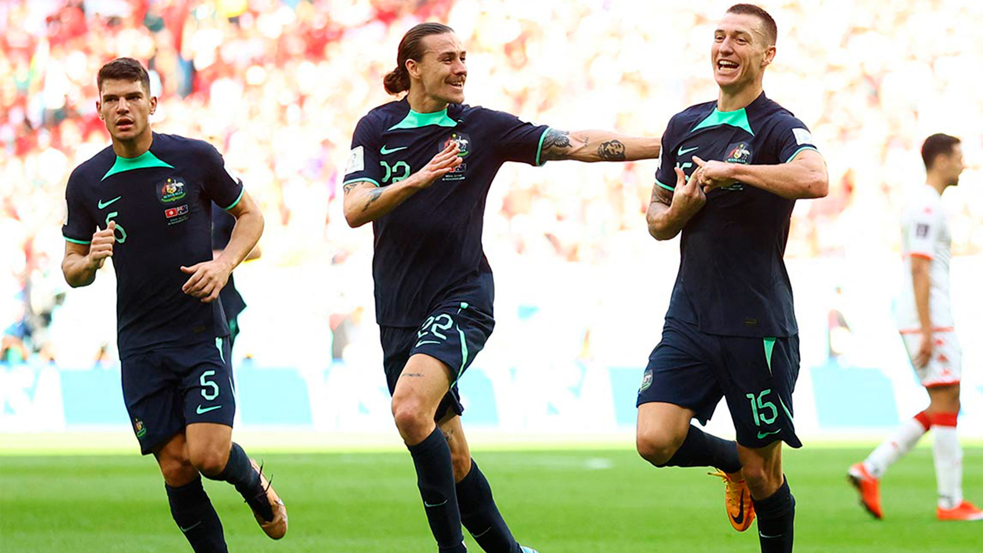 Los ‘Socceroos’, que ganaron su tercer partido en un Mundial, son segundos, de momento, con el mismo puntaje que el líder Francia (3). Los tunecinos son parcialmente colistas con un punto, producto de su empate 0-0 ante Dinamarca (tercero).