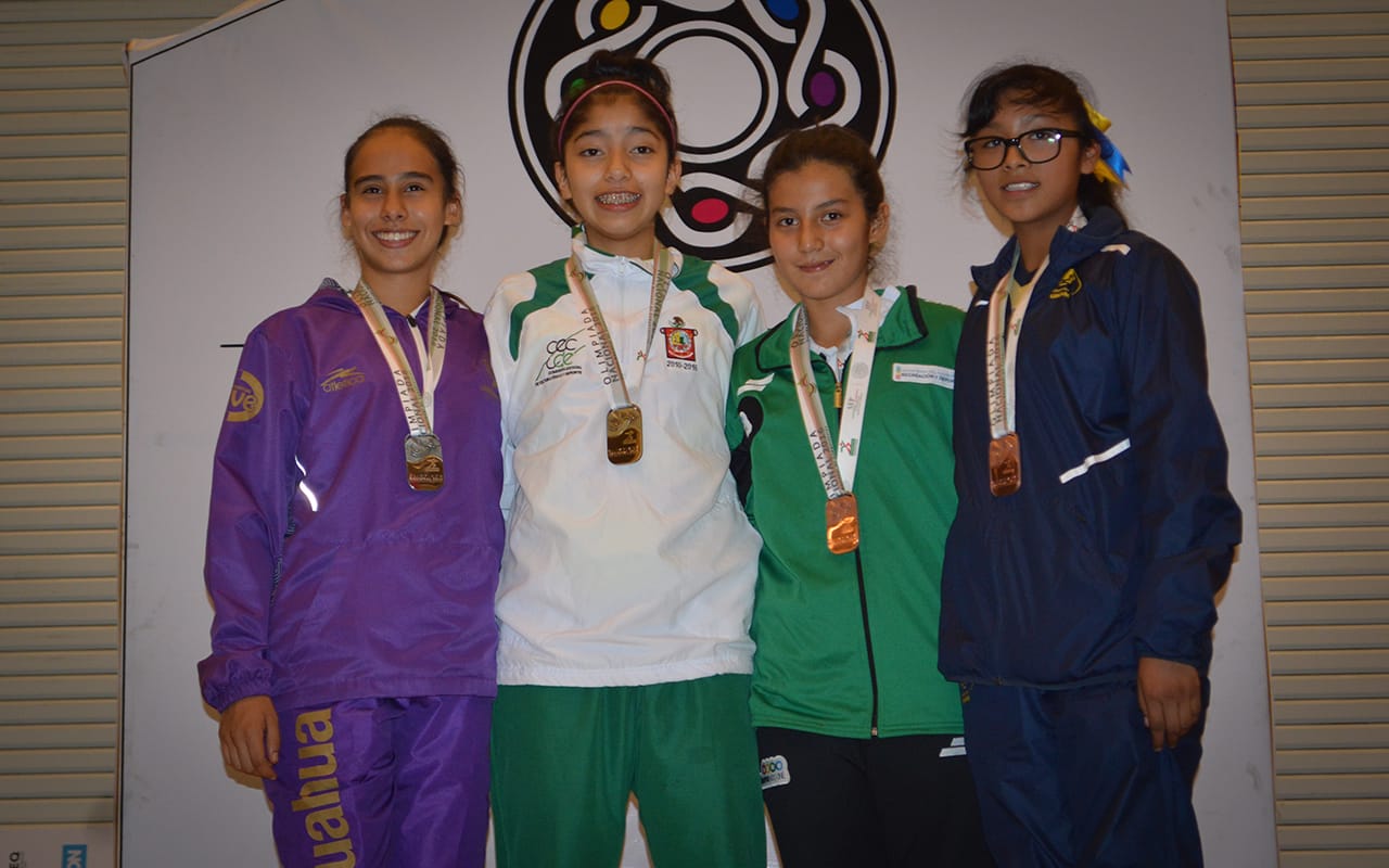 La delegación chiapaneca de taekwondo continúa cosechando preseas en la Olimpiada Nacional 2016, ahora por conducto de Sofía Velázquez Zenteno, quien se quedó con la medalla de oro y Alexandra Herrera Velasco se aferró a la plata en la modalidad de combates.