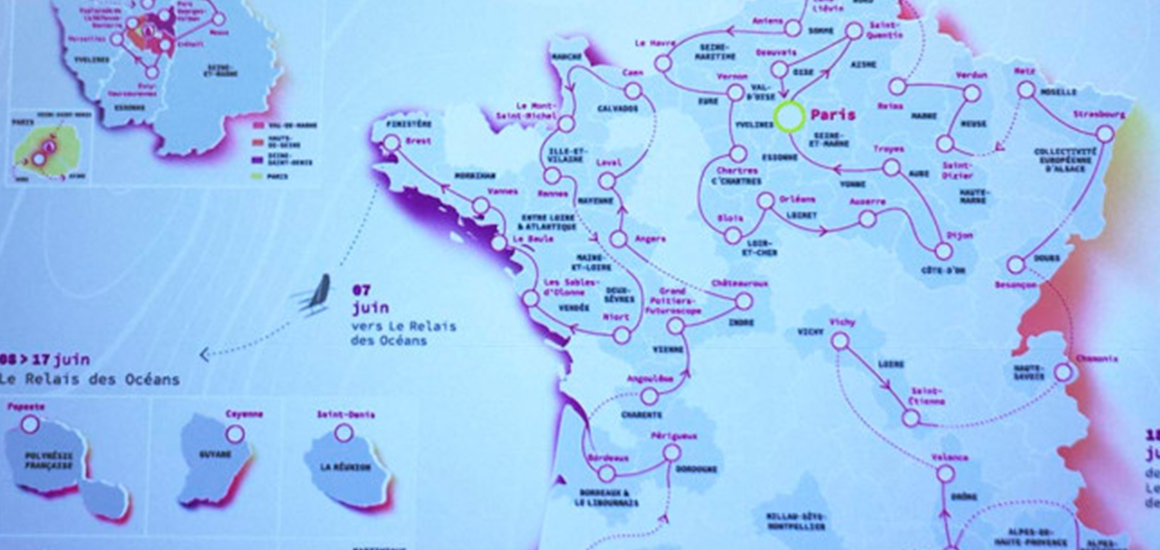 De los 64 territorios franceses del trazado, 5 son de ultramar y de los 400 pueblos y ciudades, 65 servirán de ‘final de etapa’, con actos de acompañamiento como conciertos o eventos deportivos. El recorrido no será lineal.
