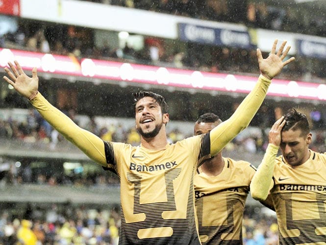 Ismael Sosa, con una actuación alocada en la que marcó un gol, dio una asistencia y llevó a la desesperación a Miguel Samudio y Pablo Aguilar para que fueran expulsados, empujó a Pumas a su primera victoria sobre el América en el Estadio Azteca, de 3-0 en los juegos de liguilla que han protagonizado, y opacó, en parte, un error del árbitro Fernando Guerrero, quien anuló un gol legítimo de Matías Britos, para encaminar al club universitario a una de sus noches más dulces, que lo encamina a la final.