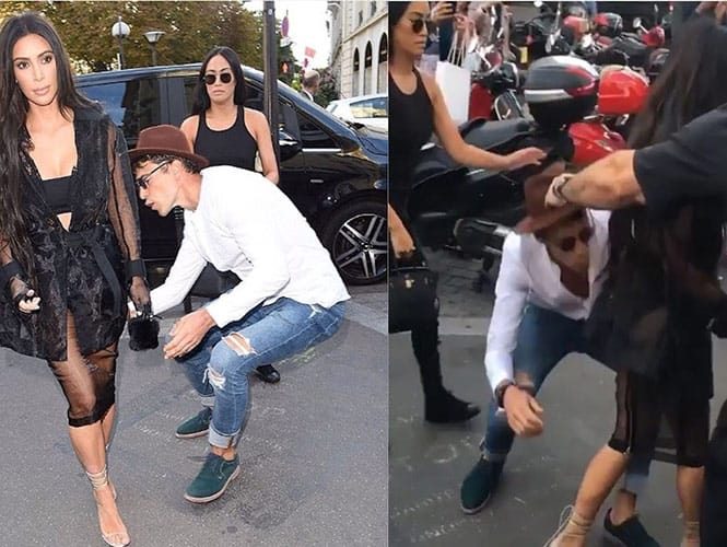 El mediático trasero de Kim Kardashian casi fue besado por un sujeto que logró evadir la seguridad para agredir a la famosa celebridad californiana,en la Semana de la Moda en París, Francia.