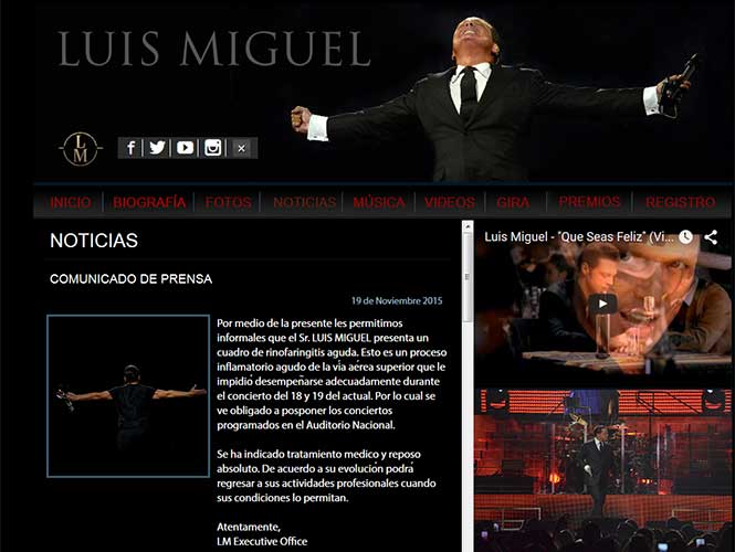 En lo que va del año, Luis Miguel ha cancelado tres presentaciones: la primera en Yucatán, la segunda en Veracruz, por un norte que entró en la entidad, y la tercera ahora en el Auditorio Nacional de la Ciudad de México.