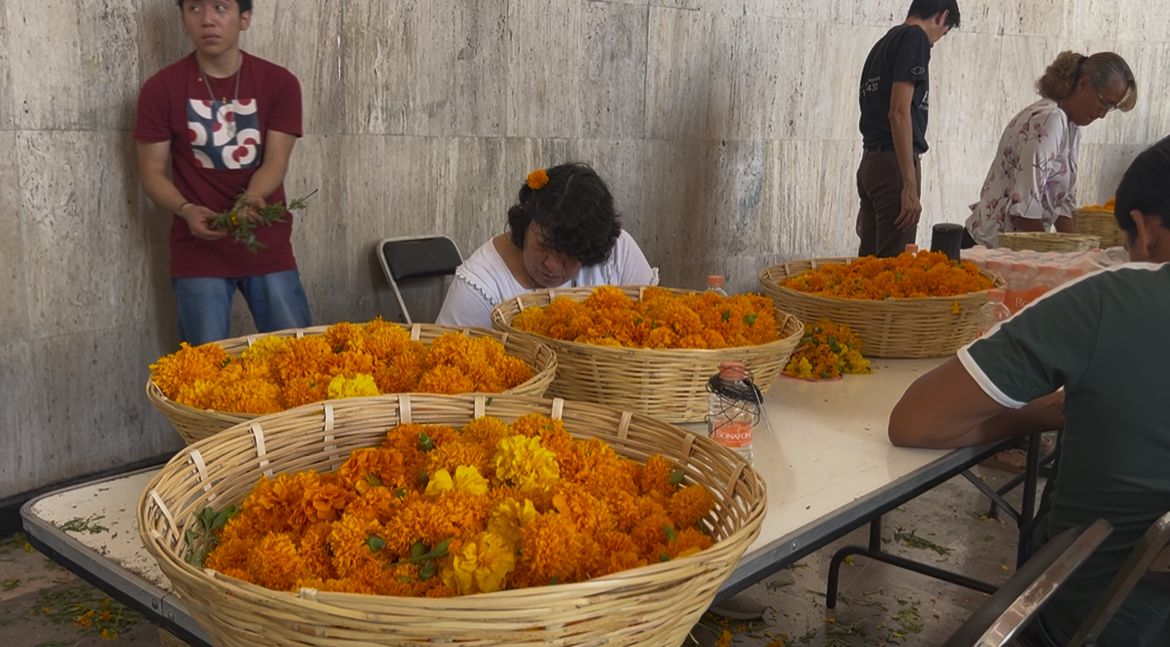 “La diseñamos utilizando elementos zoques que son importantes, que no se pueden dejar a un lado, hablamos de las ensartas de flor de muerto, de Musá, estamos incluyendo panes tradicionales, panes en forma de persona”, explicó Erick Chandomí, florista y promotor cultural.