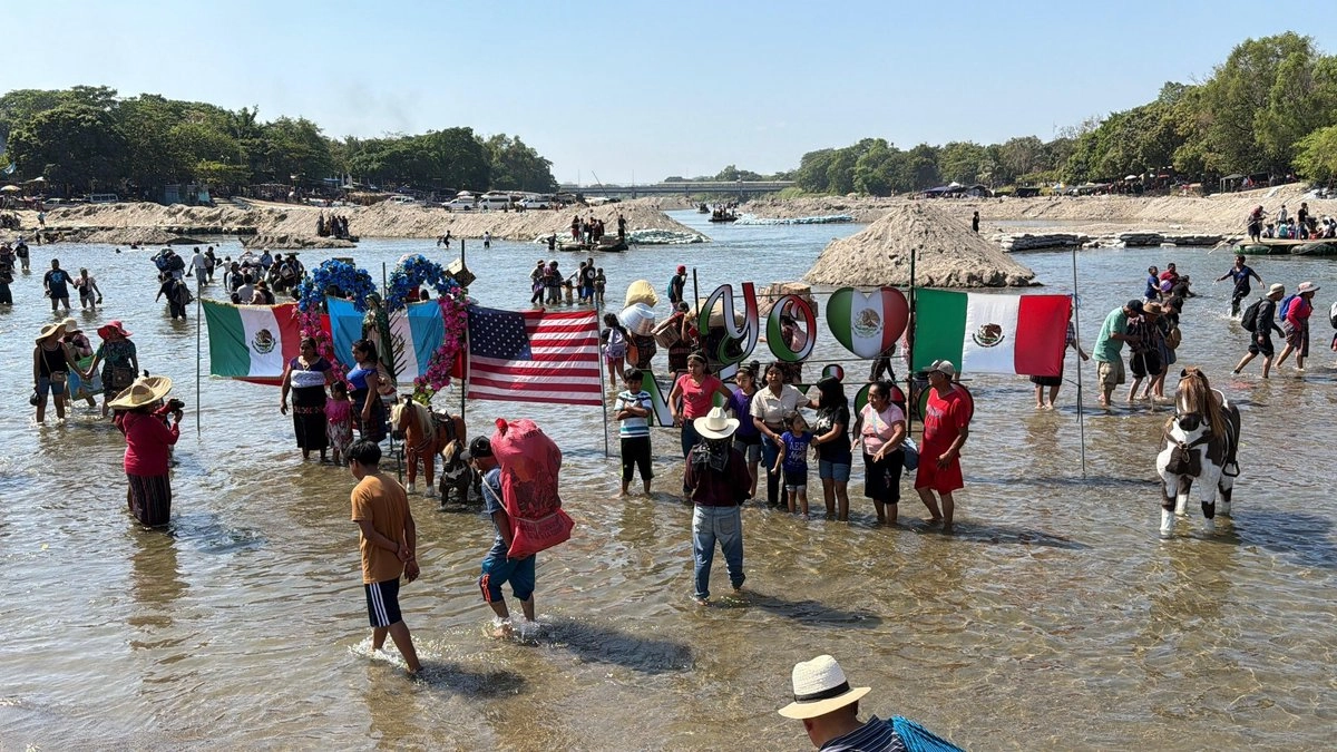 Cientos de guatemaltecos cruzan a pie hacia México por el río Suchiate como parte de las actividades religiosas, artísticas, culturales y comerciales que celebran en ambos lados de la frontera en el marco de la cuaresma.