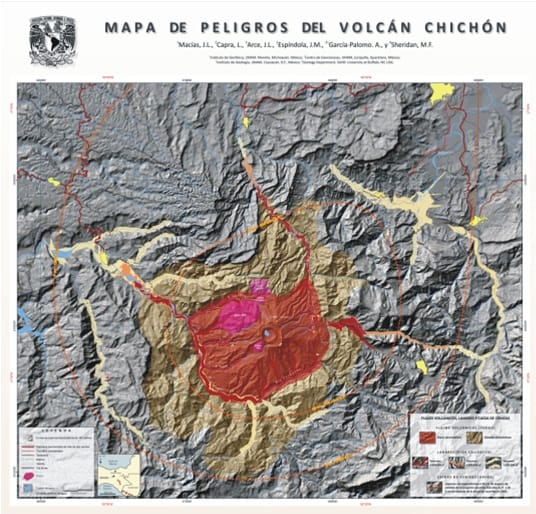 Cabe señalar que sólo 4 de los 12 volcanes existentes en el país cuentan con un mapa de peligros que son el Popocatépetl, el de Colima, el de Orizaba y ahora el Chichonal.