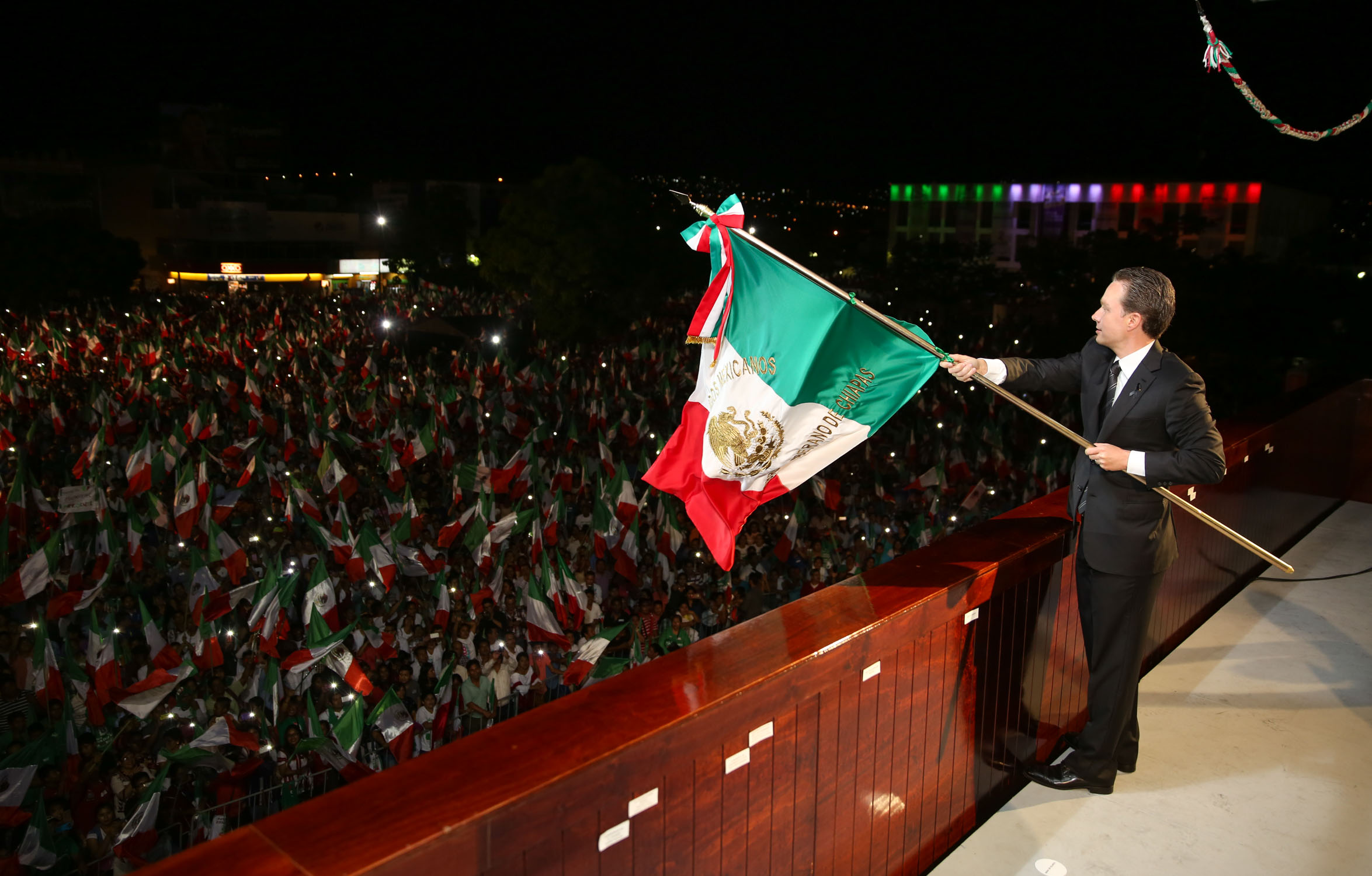 “Compatriotas chiapanecos, vivan los héroes que nos dieron patria y libertad, ¡Viva Hidalgo!, ¡Viva Morelos!, ¡Viva Guerrero!, ¡Viva Allende!, ¡Viva Aldama y Matamoros!, ¡Viva La Corregidora!, ¡Viva nuestra Independencia Nacional!, ¡Vivan nuestros pueblos indígenas!, ¡Viva Fray Bartolomé de Las Casas!, ¡Viva Fray Matías de Córdova!, ¡Viva Belisario Domínguez!, ¡Viva la unidad de todo Chiapas!, ¡Viva Chiapas!, ¡Viva Chiapas!, ¡Viva su gente!, ¡Viva México!, ¡Viva México!, ¡Viva México!, ¡Chiapas Vive, Chiapas está de pie”, enfatizó.