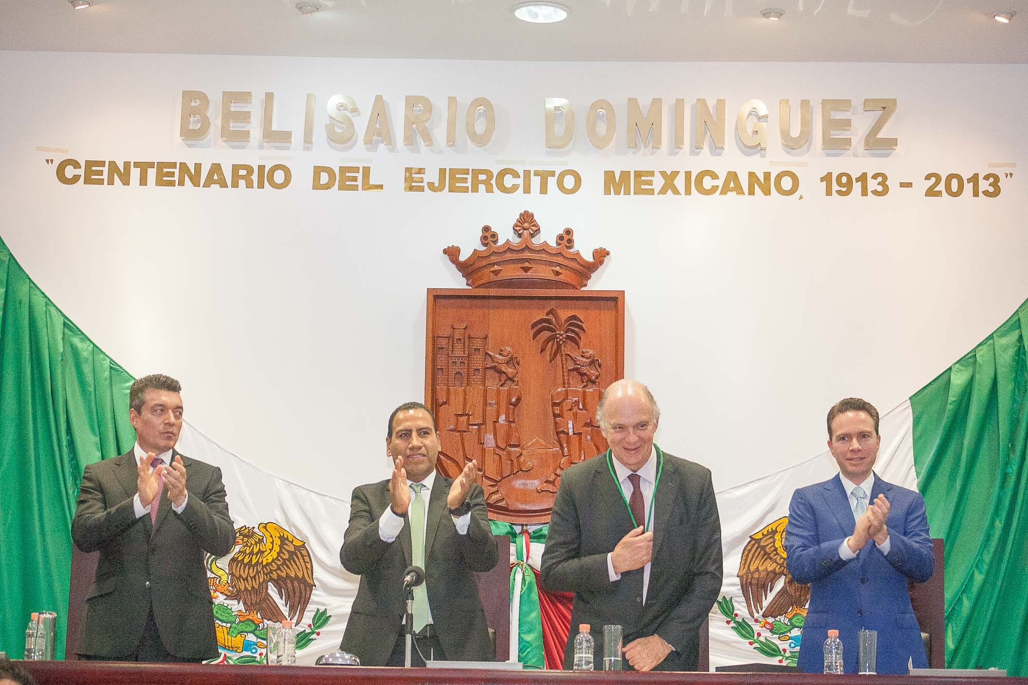 Presentes los representantes de los tres poderes, diputadas y diputados, senadores e invitados especiales; la esposa del mandatario estatal, Anahí de Velasco; Gabriel Guerra Castellanos, hijo de la escritora y poeta chiapaneca Rosario Castellanos, el Gobernador atestiguó la entrega a Enrique Krauze, de la máxima distinción que otorga el Congreso del Estado de Chiapas a personajes destacados por su labor cultural, social y política.