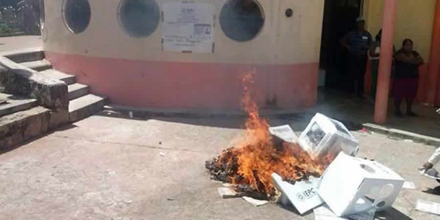 El secretario general de Gobierno de Chiapas, Juan Carlos Gómez Aranda, dio a conocer la irrupción de personas, presuntamente del poblado oaxaqueño de Santa María Chimalapas, en territorio estatal, donde quemaron dos urnas en el municipio de Belisario Domínguez, donde chiapanecos sufragaban.