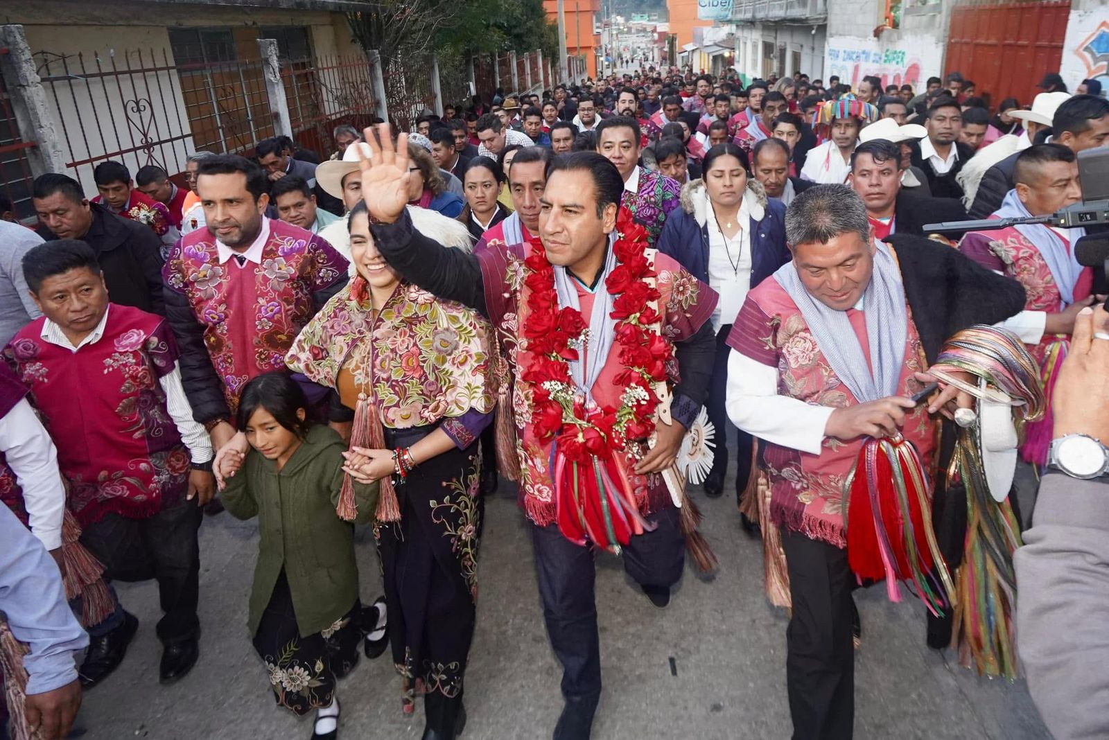 Al concluir la ceremonia, desde el atrio de la Iglesia de San Lorenzo, el mandatario agradeció la bendición del santo patrono para este caminar que apenas comienza, y destacó su compromiso de trabajar coordinadamente con el Ayuntamiento de Zinacantán, así como con respeto a los usos y costumbres de este pueblo.