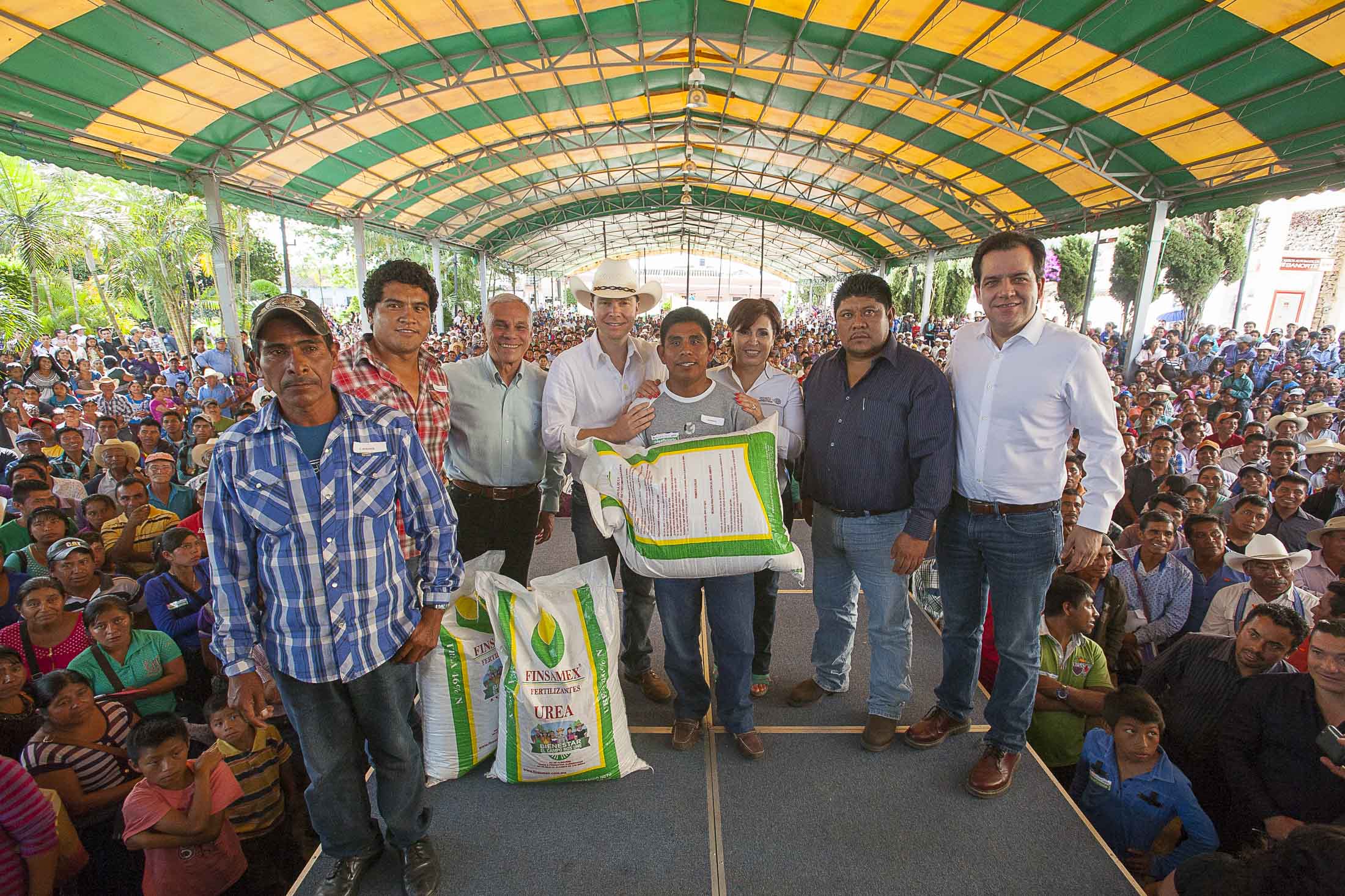 En apoyo a un total de 5 mil productores del municipio de Las Margaritas, el gobernador Manuel Velasco Coello y la titular de la Secretaría de Desarrollo Territorial y Urbano (Sedatu), Rosario Robles Berlanga, entregaron 5.5 millones de pesos en insumos agrícolas.