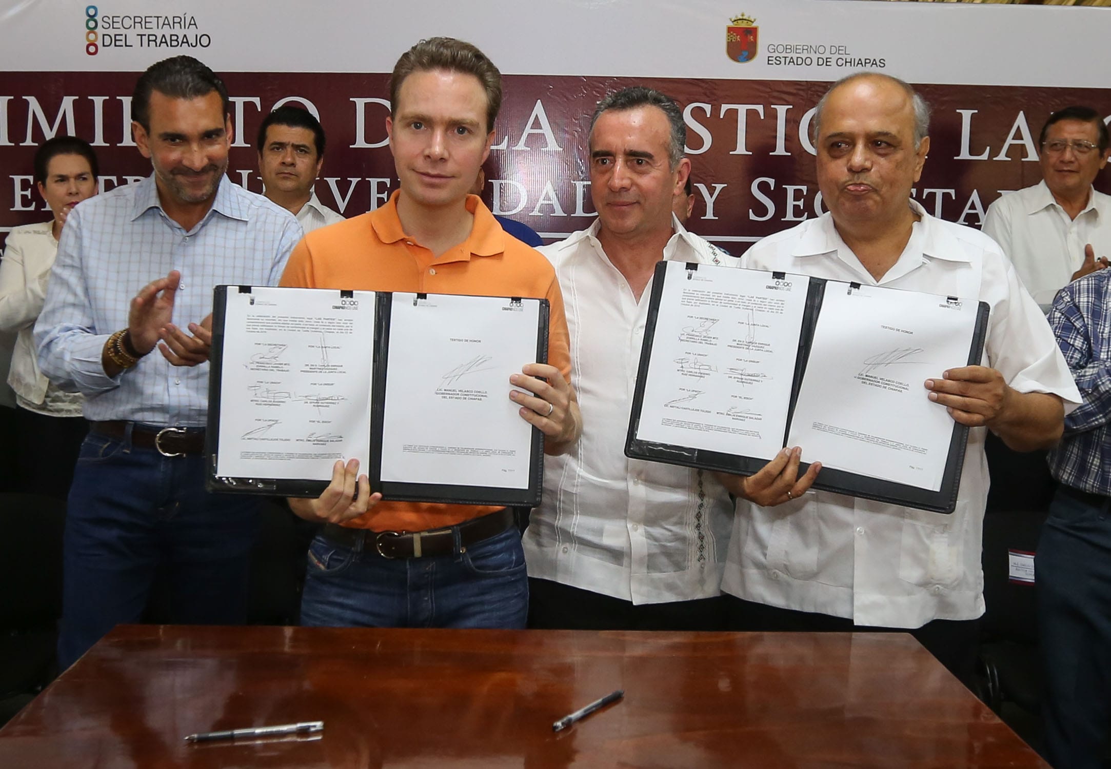 El gobernador Manuel Velasco Coello firmó un convenio de colaboración en el que participan la Secretaría del Trabajo del estado y 14 universidades públicas y privadas de Chiapas, a fin de garantizar la justicia y el respeto de los derechos laborales de los trabajadores.