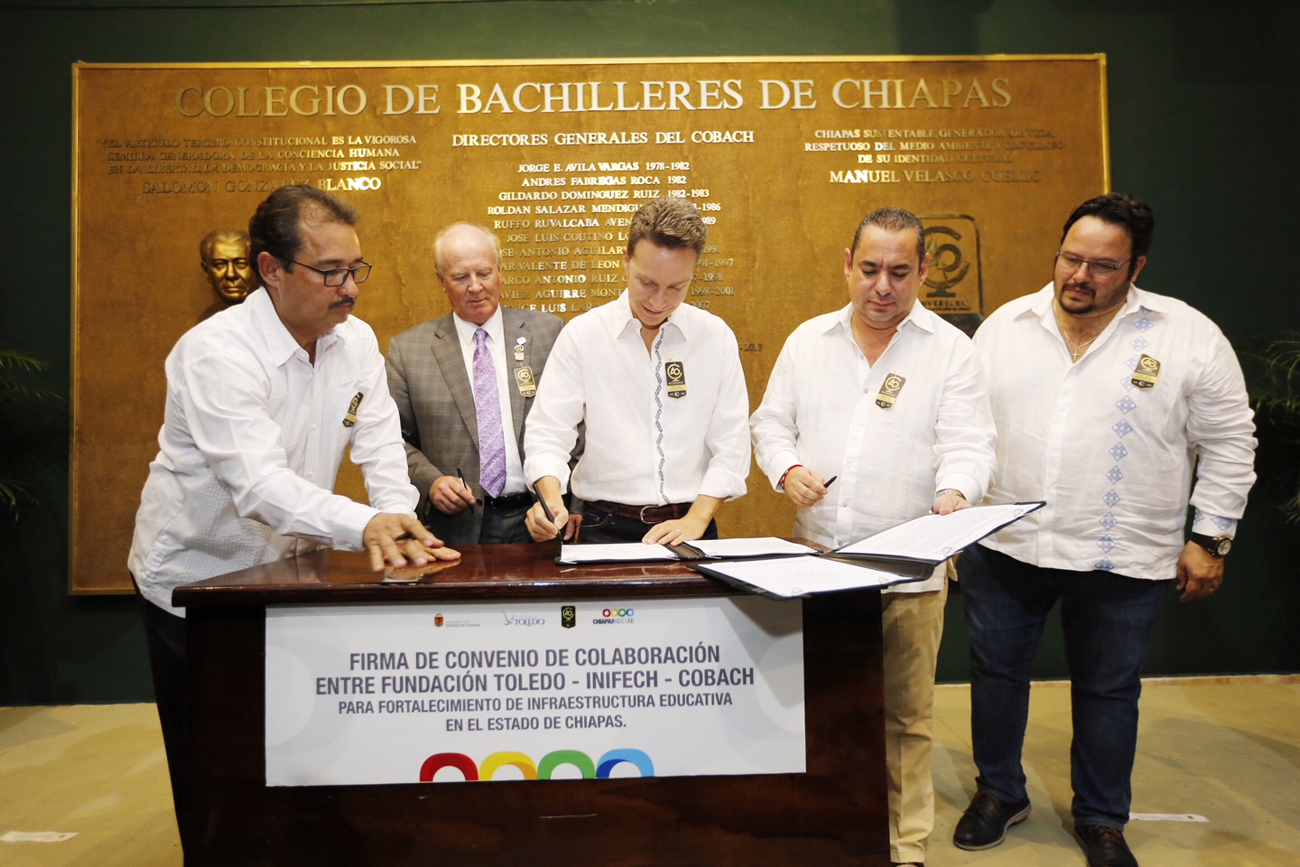 En el marco de los festejos del 40 aniversario del Colegio de Bachilleres de Chiapas, el gobernador Manuel Velasco Coello Coello encabezó la inauguración de las instalaciones de Radio y Televisión CobachTV y la develación del Muro de Honor en homenaje a Don Salomón González Blanco, fundador de dicha institución.