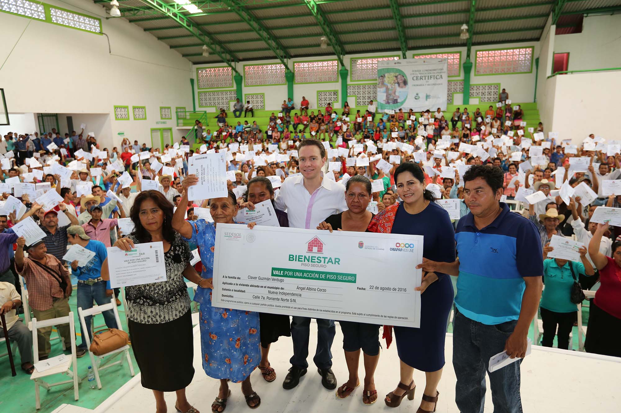El gobernador Manuel Velasco Coello entregó un total de 600 certificados del programa Piso Seguro a familias de la localidad de Jaltenango de La Paz, municipio de Ángel Albino Corzo.