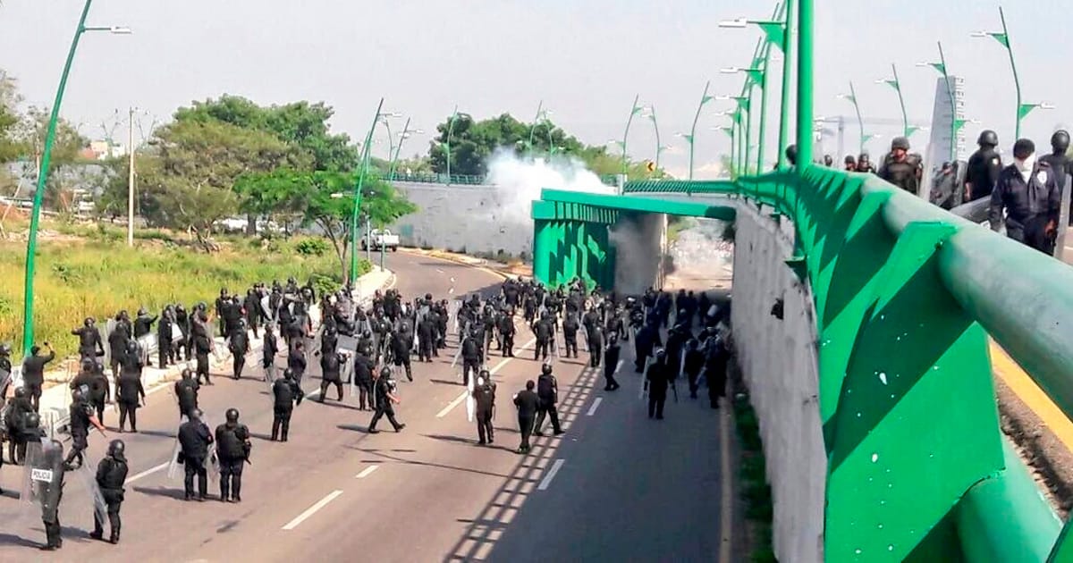 En diversas ocasiones los elementos policiacos repelieron las agresiones de los maestros inconformes, quienes instalaron barricadas, incendiaron un vehículo de la policía municipal y carros de un supermercado que se encuentra en la ruta que pretendían cerrar.