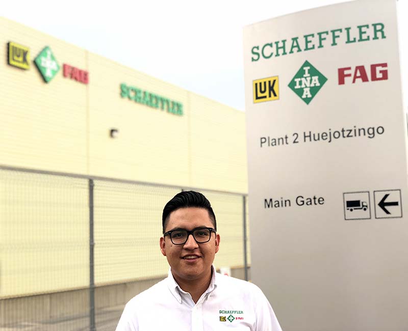 Señaló que desde hace dos años que ingresó a trabajar en la empresa Luk Puebla Planta 2 del Grupo Schaeffler, en la ciudad de Puebla, ha logrado desarrollar una buena trayectoria: “primero estuve en el área de dibujo, actualmente  como ingeniero de diseño en donde me encargo del desarrollo del producto del convertidor de torque, lo que implica la fabricación y diseño de éste”.
