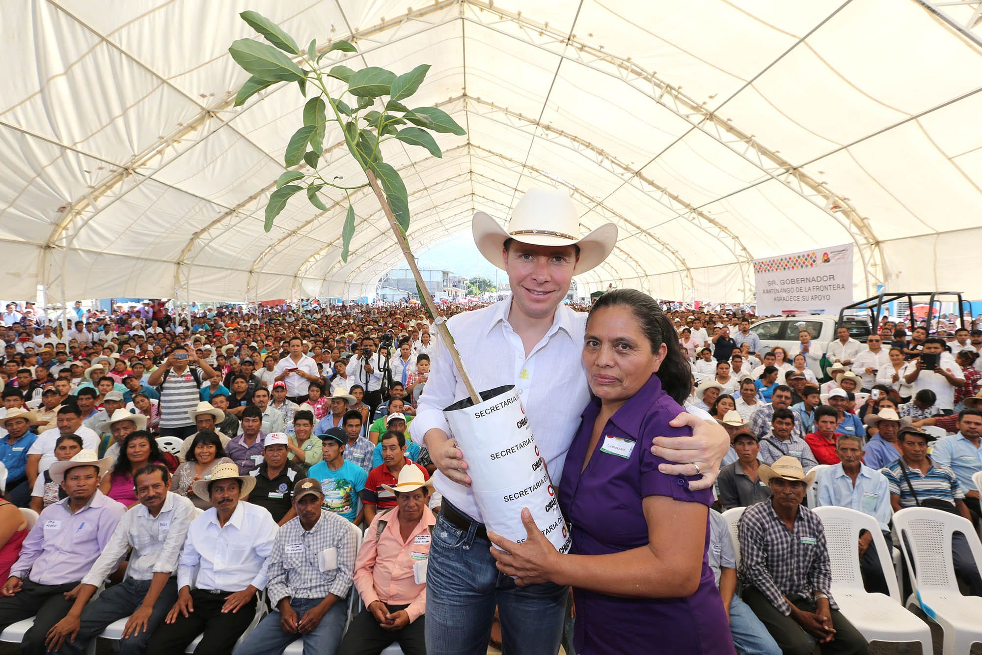 Con el fin de atender los desafíos actuales en el sector agrícola, en beneficio de los productores y sus familias, en Chiapas se apuesta a la reconversión de cultivos con la entrega de árboles frutales, lo que permite diversificar la producción y hacerla más rentable, aseguró el gobernador Manuel Velasco Coello.