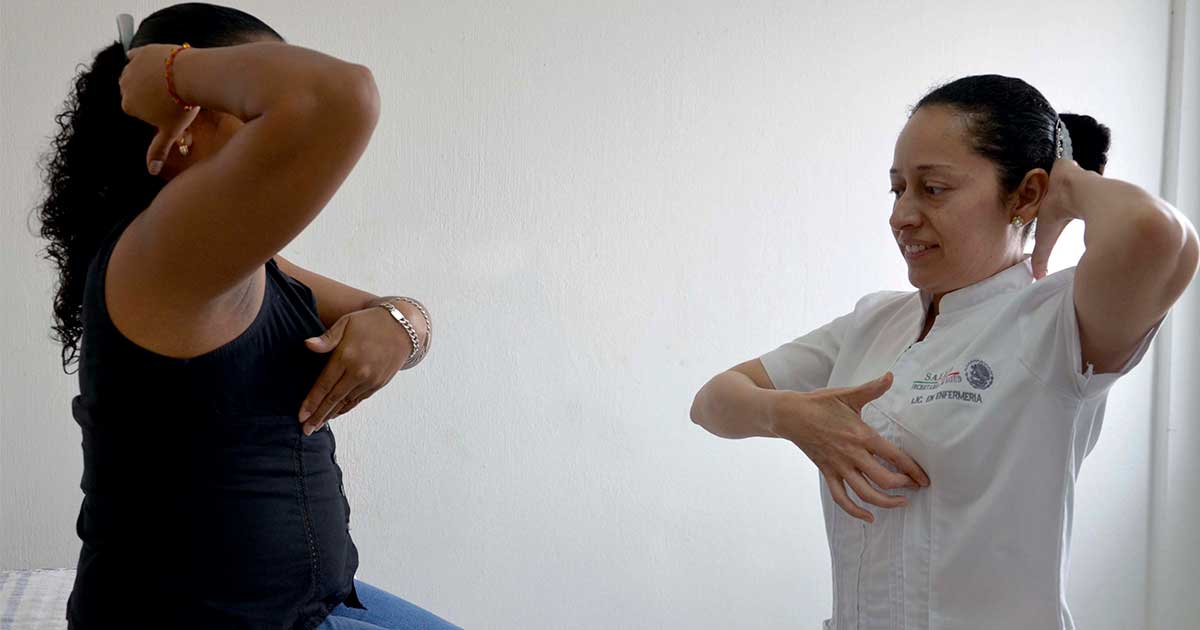 La Secretaría de Salud del estado exhorta a la población femenina a realizarse mensualmente la autoexploración mamaria para la detección oportuna de anomalías y cáncer de mama, principalmente cuando hay factores de riesgo como antecedentes familiares con esta patología, ausencia de embarazos, menstruación temprana y menopausia tardía.