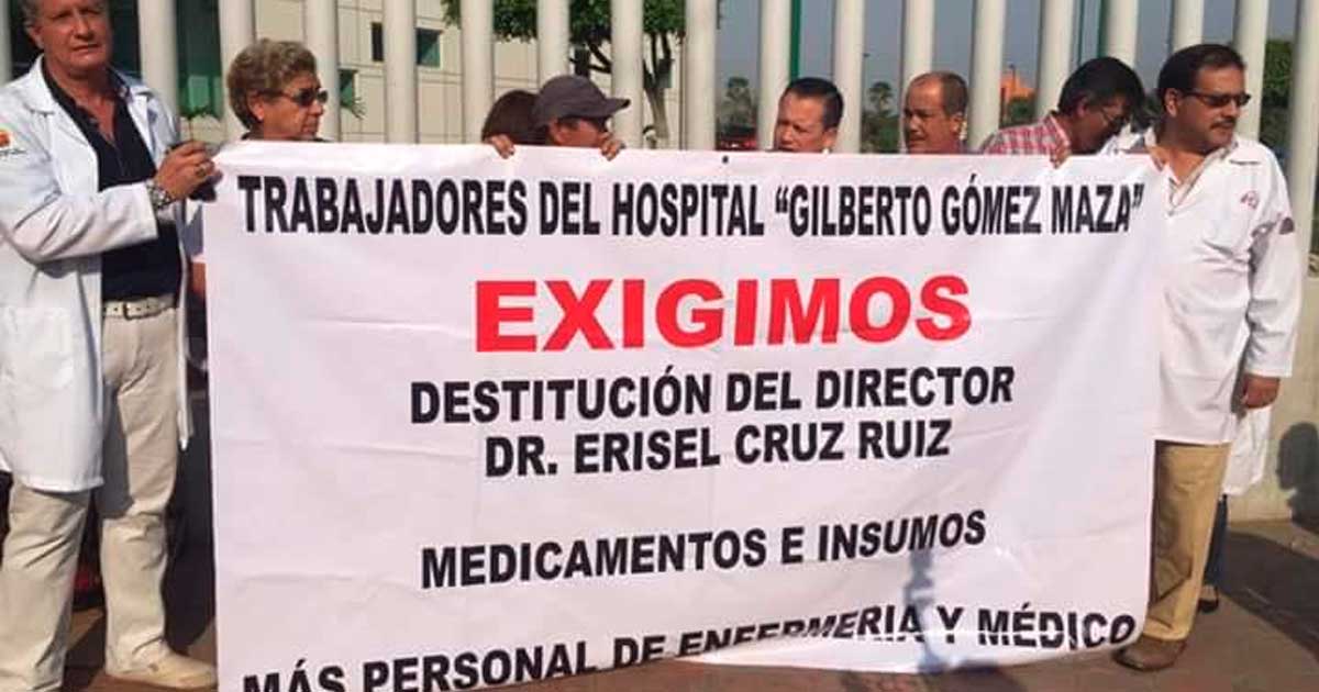Aproximadamente 150 trabajadores del Hospital General “Gilberto Gómez Maza” denunciaron al director del nosocomio de actuar de manera negligente, pues además de prepotentes y sin respeto a pacientes, enfermeras, doctores y administrativos, no dotan los recursos para que se pueda dar el servicio de calidad a quienes recurren por asistencia médica.
