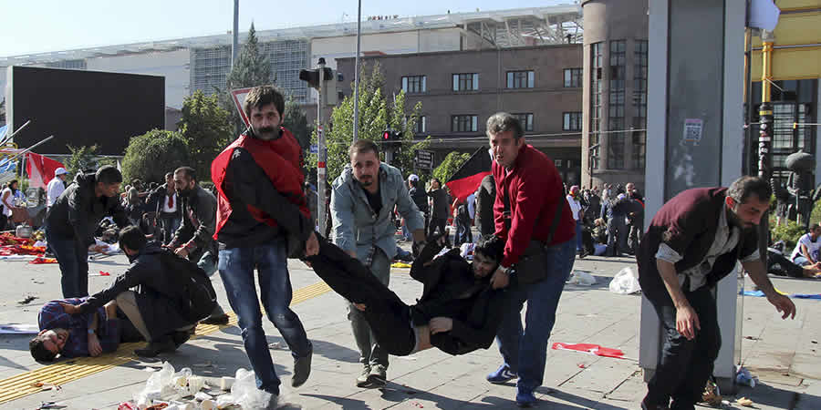 No estaba claro si se trataba de atentados suicidas. El ataque se produjo unas semanas antes de las elecciones del 1 de noviembre en Turquía.
