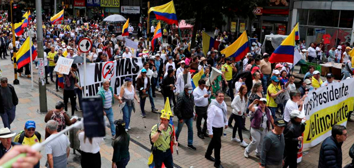 Según un reporte de la policía, unas 92 mil personas protestaron en todo el país también para oponerse a la llamada política de “Paz Total” con la que el gobierno pretende desarmar las organizaciones ilegales a cambio de beneficios penales, entre otras reformas que no cuentan con los votos suficientes en el Legislativo.