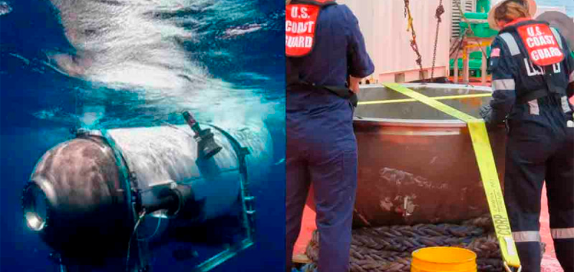 Ingenieros de seguridad marítima de la Guardia Costera de Estados Unidos (USCG) recuperaron el miércoles del fondo del océano varias partes de los restos del naufragio, incluida la tapa de titanio intacta de la embarcación.