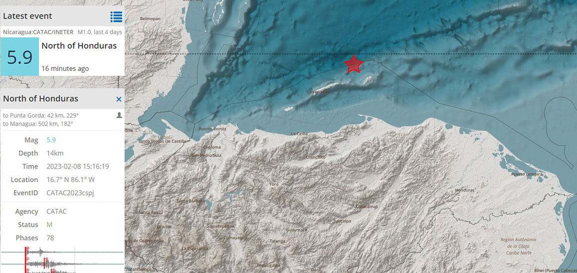 Un sismo de magnitud 5.5 sacudió esta mañana las costas de Honduras, movimiento que se pudo percibir en México —en el estado de Quintana Roo—, Belice, El Salvador, Guatemala, Honduras y Nicaragua.