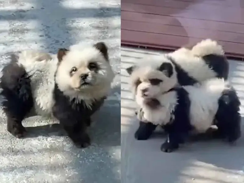 Los “pandas falsos”, fueron presentados el 1 de mayo en el Zoológico de Taizhou, en la provincia de Jiangsu, sin embrago, al verlos más de cerca y a detalle, los visitantes se percataron de que se trataba de perritos Chow Chow, una raza de pelo largo originaria del norte de China.