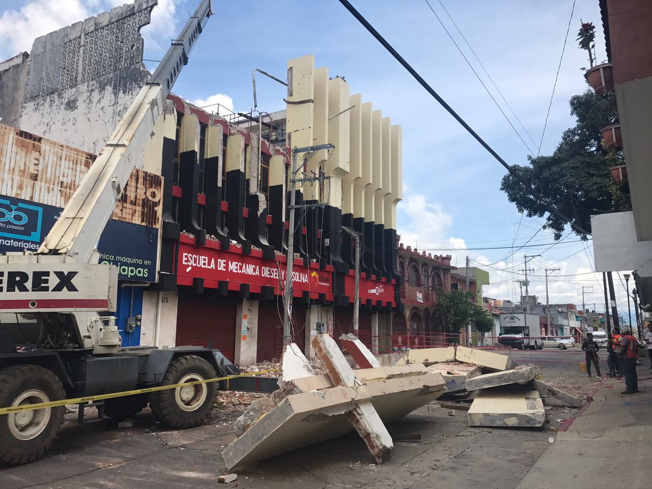 Dicho edificio presentaba daños estructurales graves, por lo que se procedió, dijo el alcalde de Tuxtla Gutiérrez, a retirar un pretil falso y el desmantelamiento de la estructura de acero de la fachada. Añadió que los muros de carga de la planta baja, pisos superiores y los muros de la fachada principal, también presentaron grietas importantes.