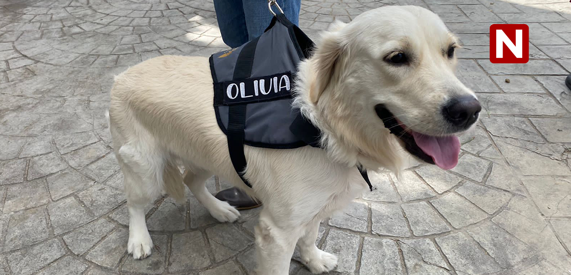 Olivia, es una perrita Labrador retriever que brinda acompañamiento a personas que están atravesando un proceso de duelo tras la muerte de algún ser querido.