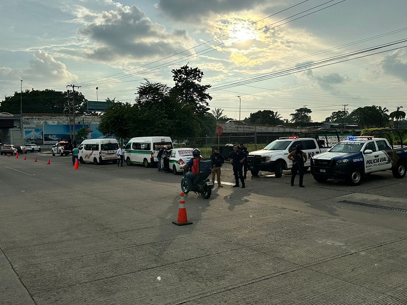 En Tapachula, a la altura del entronque y libramiento Sur Poniente, participaron elementos del Grupo Especial de Reacción Inmediata (GERI), la Policía Estatal Vial Preventiva, la Vialidad Municipal, la Secretaría de Seguridad Pública Municipal Canina K-9 y personal de la SMyT.