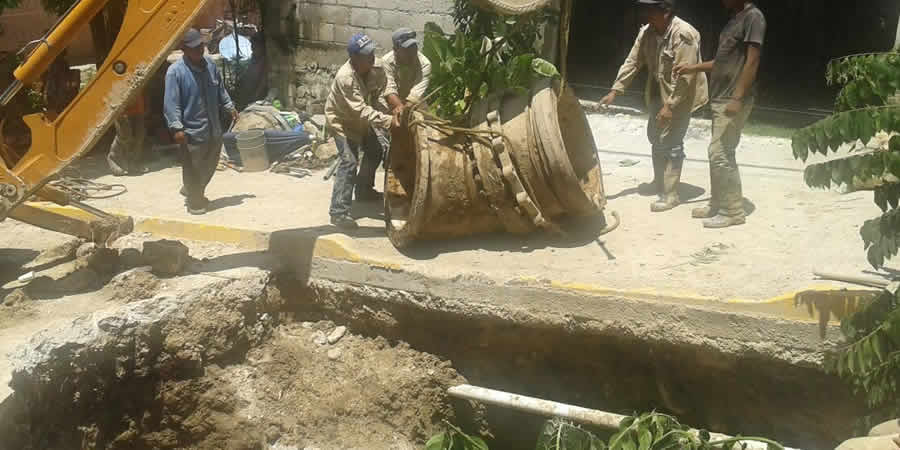 Derivado de una fuga de agua en la tubería hidráulica de 30 pulgadas de diámetro, de la línea principal del Brazo Sur, personal del SMAPA realiza desde el pasado sábado 25 de Julio, trabajos de reparación en el tramo ubicado en la Avenida Rebombeo, entre calles Bugambilia y El Zapote, colonia Cerro Hueco.