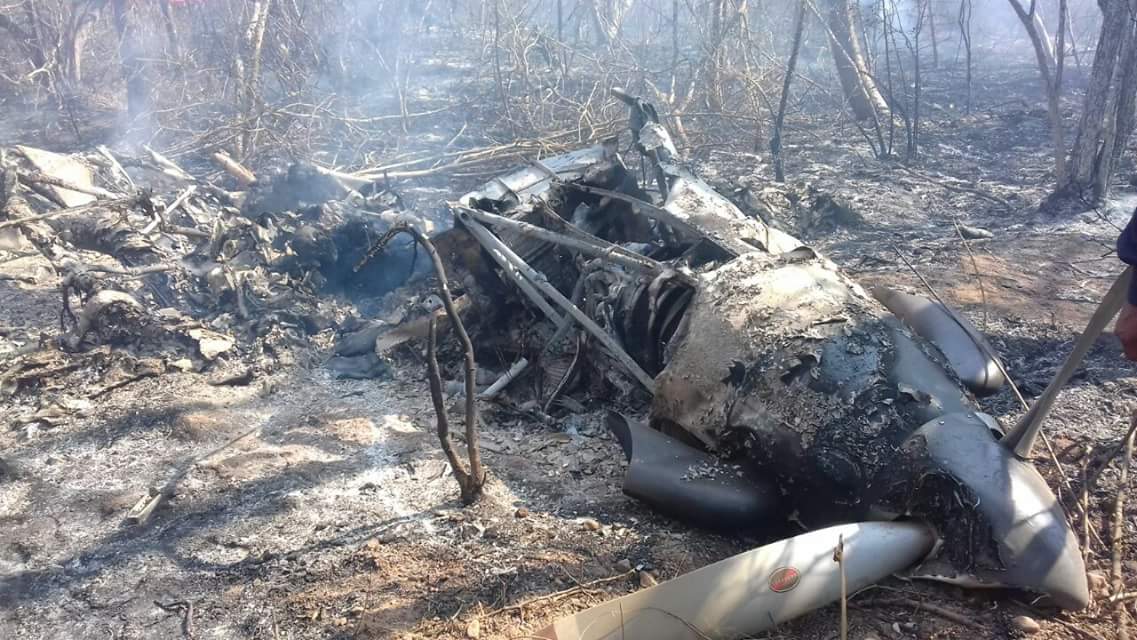 En el lugar quedo la avioneta pilatus PC7, misma que quedo complemente calcinada así como a dos personas que se encontraban sin vida calcinadas.