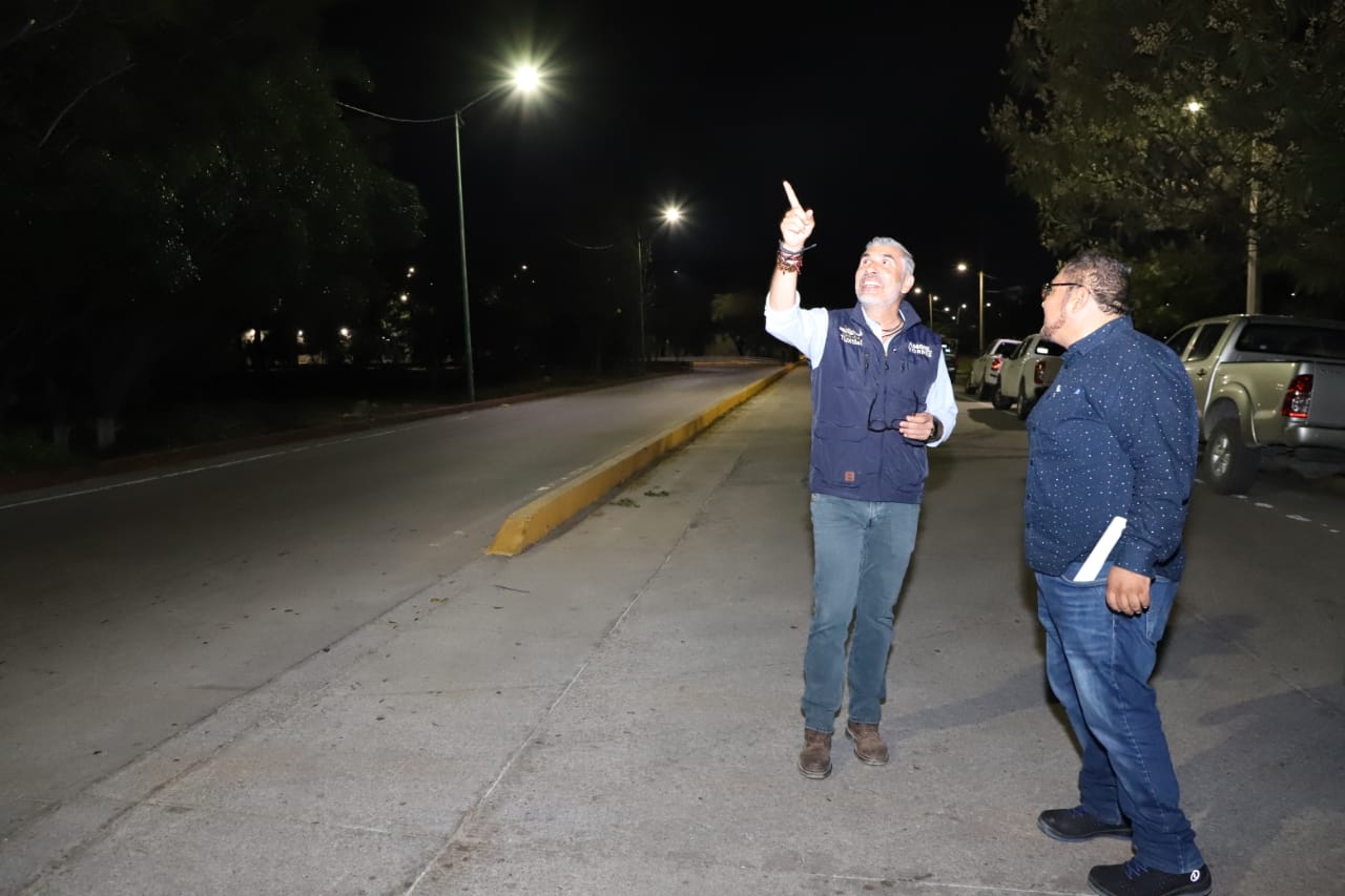 Angel Torres, junto al secretario de Servicios Municipales, Horacio Gómez González, y al director de Alumbrado Público, Pablo Ruiz, realizó un recorrido en el crucero de la Carretera Panamericana, cerca de la intersección de los libramientos norte y sur, en el lado oriente de la capital, donde rehabilitaron el alumbrado de la zona.