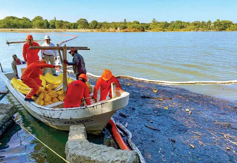 Sin embargo, la tarea es titánica. En un comunicado, Petróleos Mexicanos informó que se han recolectado 180 mil litros de los 4.7 millones que se calcula fueron derramados al afluente y que equivalen a más de 30 mil barriles, según lo estimado.