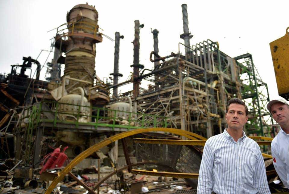 Enrique Peña Nieto recorre zona de explosión en complejo petroquímico