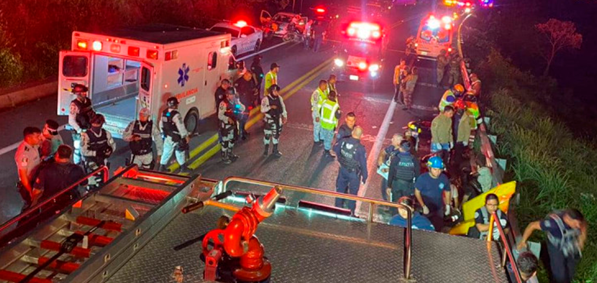 Al lugar llegó personal de la Secretaría de Seguridad y Protección Ciudadana, así como de la Policía Estatal, bomberos, Cruz Roja Mexicana, de la Sedena, Guardia Nacional y del Grupo AMEC, los cuales se coordinaron para atender la emergencia y auxiliar a las personas que viajaban en el autobús accidentado.