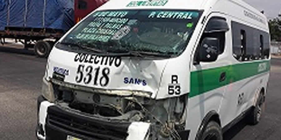Cuantiosos daños materiales y una persona lesionada fue el saldo de un choque entre colectivos ocurrido la tarde de este martes en la entrada Poniente de Tuxtla, a la altura del monumento a La “Carreta”.