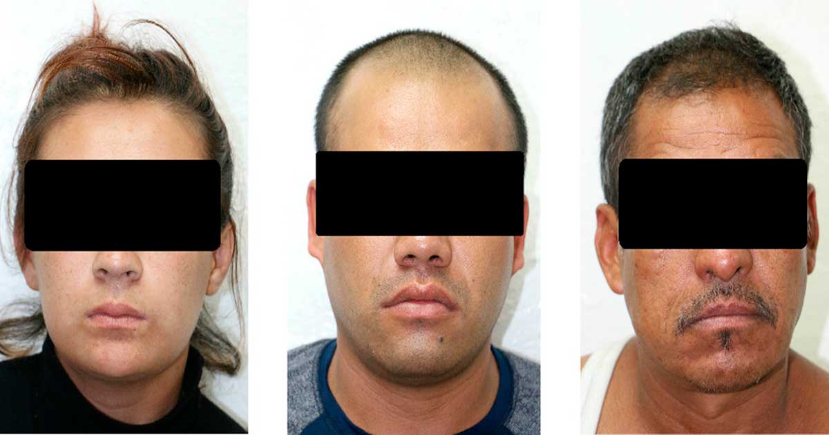 Derivado de los trabajos de inteligencia e investigación por grupos interinstitucionales conformados por la PGJE, fueron capturados José Luis Estrada Pérez de 44 años, Edilberto Torres Sánchez de 28 años y Sandra Ivet Caballero Ríos de 24 años de edad.