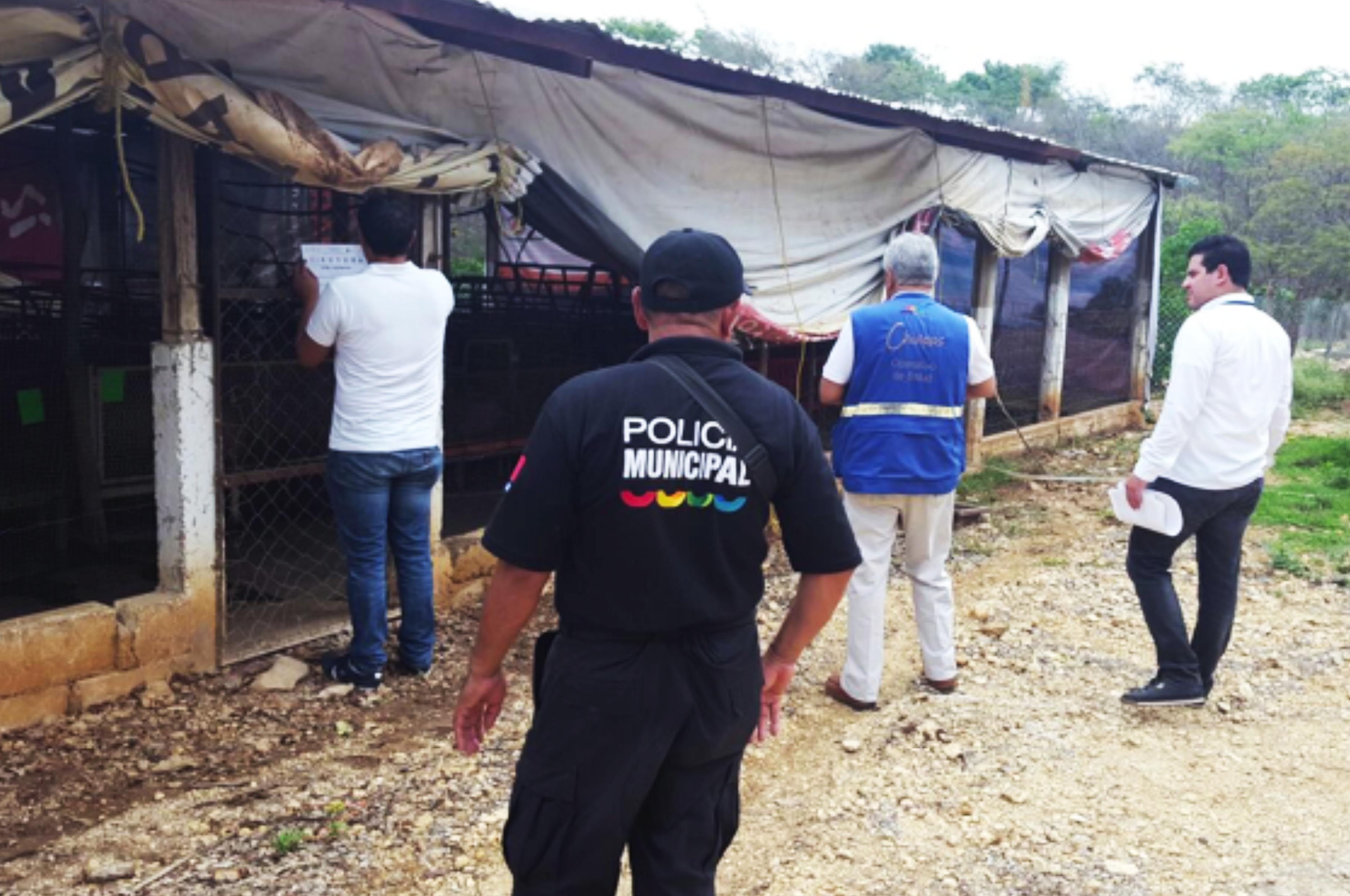 Elementos de la Fiscalía General del Estado (FGE) realizaron operativo interinstitucional en materia de jurisdicción sanitaria para la verificación sanitaria en el establecimiento denominado “Granja Porcina Canadá”, ubicada en el ejido de Villahermosa, municipio de Ocozocoautla.