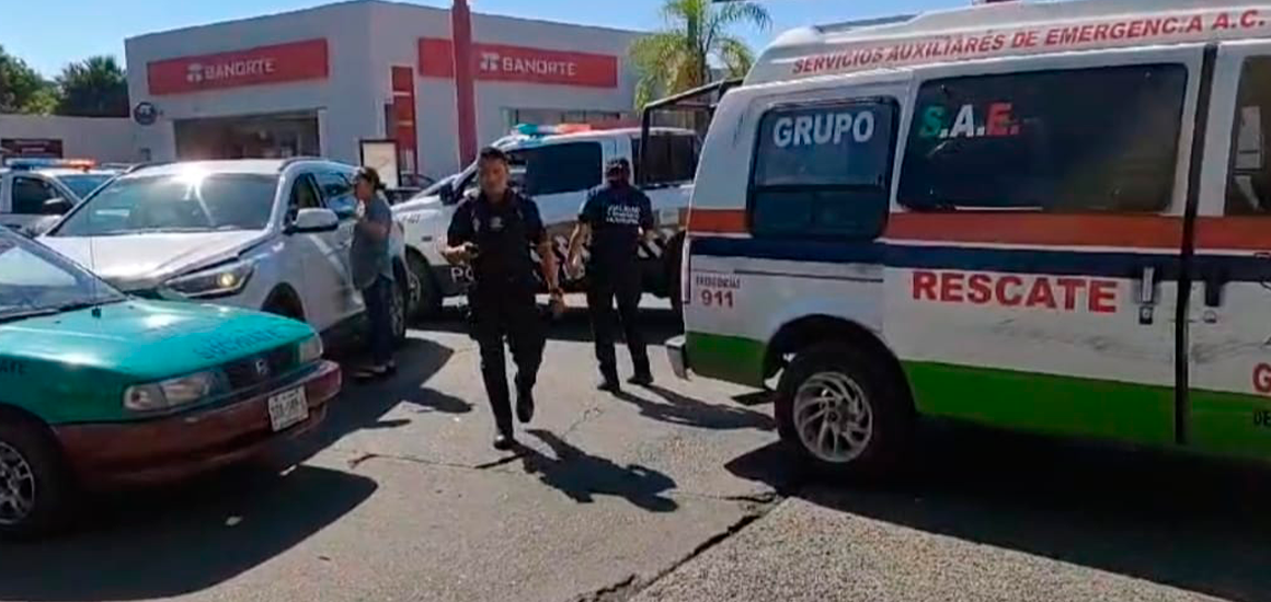 Al lugar acudieron elementos de las distintas corporaciones policiacas y paramédicos del grupo SAE, quienes localizaron a los dos conductores involucrados y a dos personas más que viajaban en la unidad de alquiler, el reporte indicó que el chófer del taxi resultó con lesiones en el rostro y golpes a la altura de las costillas, mientras que los pasajeros terminaron con golpes menores y crisis nerviosa, por su parte la conductora de la unidad particular resultó ilesa.