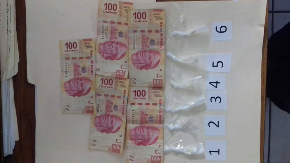 A la persona que se identifico con el nombre de Arturo “N” de 24 años de edad, le fue practicada una inspección de persona conforme a lo establecido en el artículo 303 del Código de Procedimientos Penales para el estado Chiapas, encontrándole entre sus pertenencias, 6 bolsitas de nylon conteniendo polvo blanco con las características propias de la cocaína, así como la cantidad de 500 pesos en efectivo, presuntamente producto de la venta del mismo.
