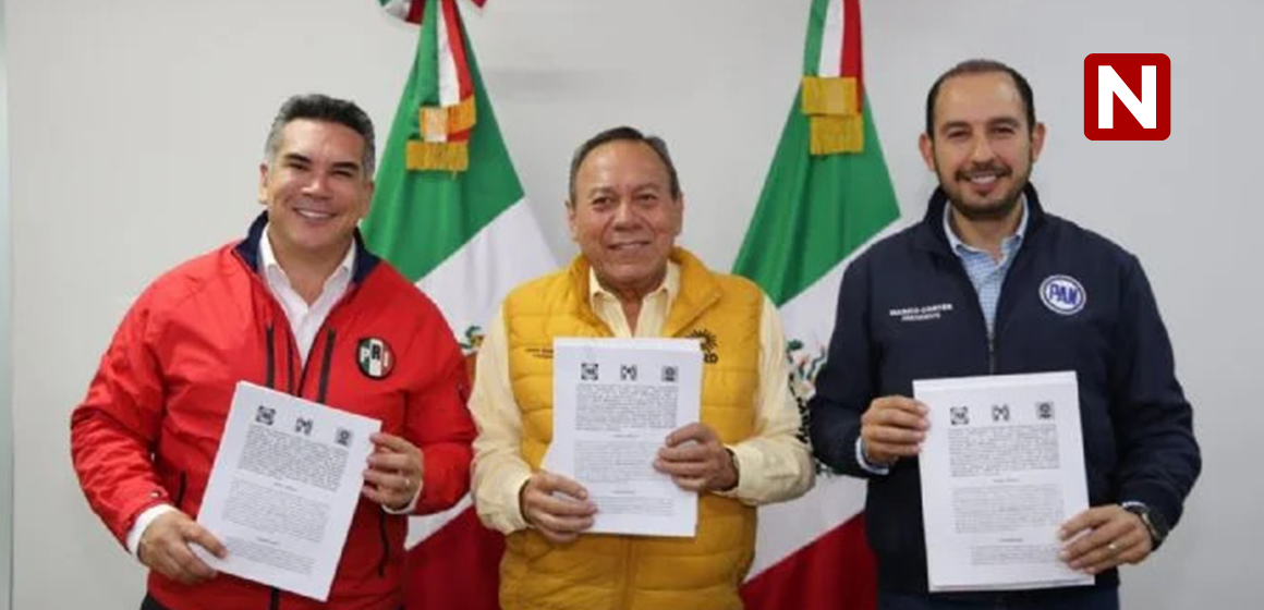 Los dirigentes de esos partidos, Marko Cortés, Alejandro Moreno y Jesús Zambrano, aseguraron que esa alianza busca el bienestar de México y que la suma de las tres fuerzas políticas quiere cambiar “el rumbo de la nación” mediante una agenda común que los lleve a alcanzar “mejores niveles de desarrollo y seguridad”.